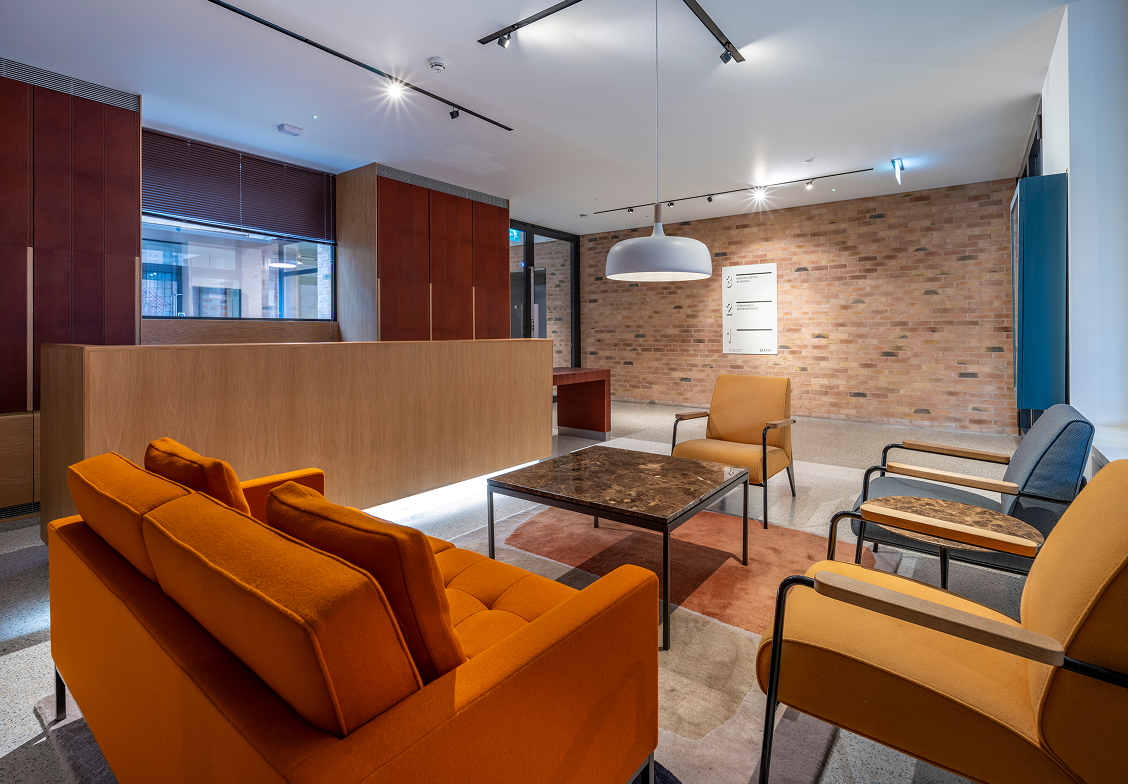 This heritage is reflected in its decorative handmade brickwork, intricate precast concrete, and refined metal detailing. The office space features an innovativeSuperhighway Ceiling System, seamlessly integrating cable distribution, sprinklers, and fire safety fittings.Complemented by a sleek black track lighting system, the design offers both flexibility and a clean, modern aesthetic.